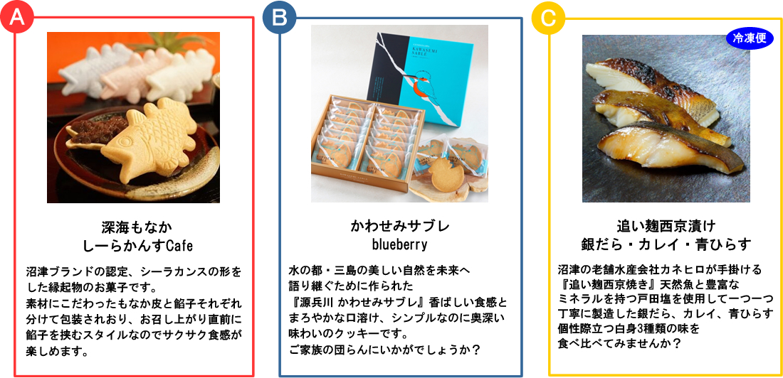 抽選で各賞10名様ずつ、合計30名様に三島・沼津のグルメを差し上げます。