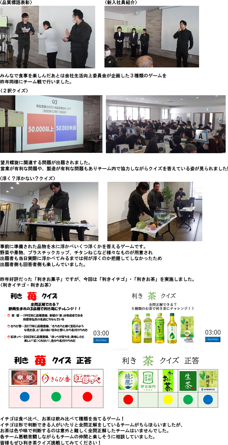 初めに品質標語の表彰と新入社員4名の紹介がありました。