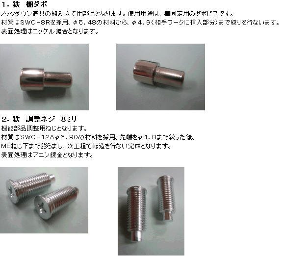 3.特殊品ねじの材質において ステンレスはもとより、鉄も製造可能。